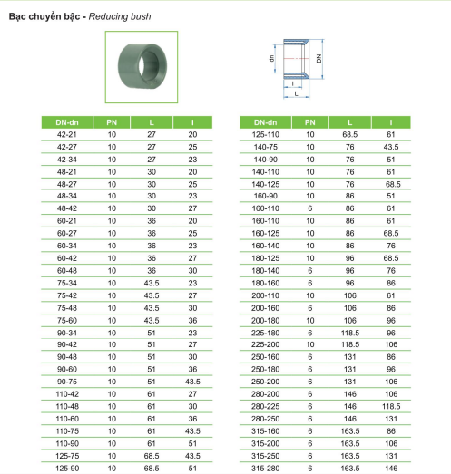 - Đa dạng kích cỡ: Cung cấp đầy đủ các kích cỡ từ 21mm đến 315mm, đáp ứng mọi nhu cầu kết nối đường ống.