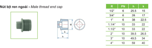 Thông Số Kỹ Thuật Nối Bịt Ren Ngoài