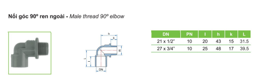 Bảng Giá Nối Góc 90 Độ Ren Ngoài Nhựa Tiền Phong